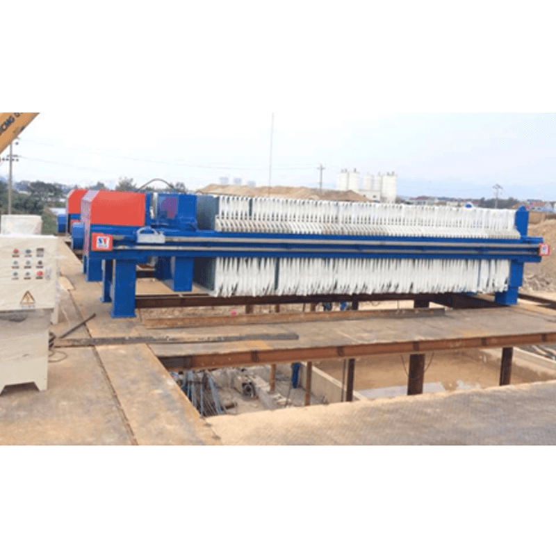 XY板框式污泥壓濾機(jī)是一種間歇性固液分離設(shè)備,是由濾板。慮框排列構(gòu)成濾室,在輸料泵的壓力作用下,將料液輸送進(jìn)各濾室,通過(guò)過(guò)濾介質(zhì),將固體和液體分離。