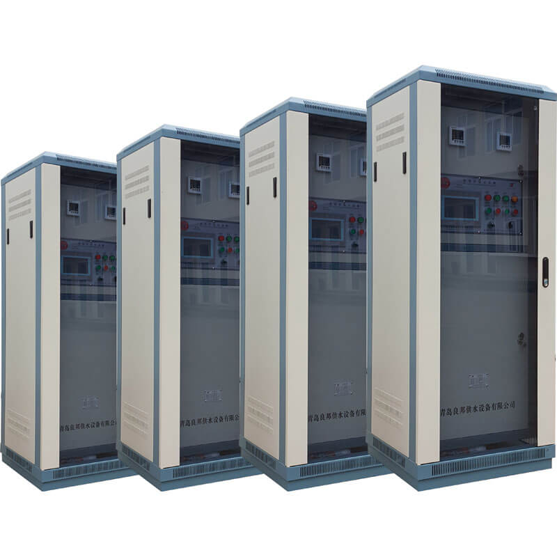變頻控制柜系統(tǒng)通過測到的管道壓力,經(jīng)變頻器系統(tǒng)內(nèi)置的PID調(diào)節(jié)器運算,調(diào)節(jié)輸出頻率,然后實現(xiàn)管網(wǎng)的恒壓供水。變頻器的頻率超限信號(一般可作為管網(wǎng)壓力極限信號)可適時通知PLC的進行變頻泵切換。為防止水錘現(xiàn)象的產(chǎn)生,泵的開關(guān)將聯(lián)動其出口閥門。